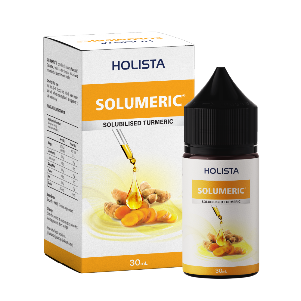 SOLUMERIC® is the World’s 1st Water Soluble Turmeric; with the highest absorption rate that ensures sufficient blood level curcumin to improve various health-related issues. It enables curcumin to be water-based and fat soluble with a high bioavailability and fast absorption rate into the blood plasma.